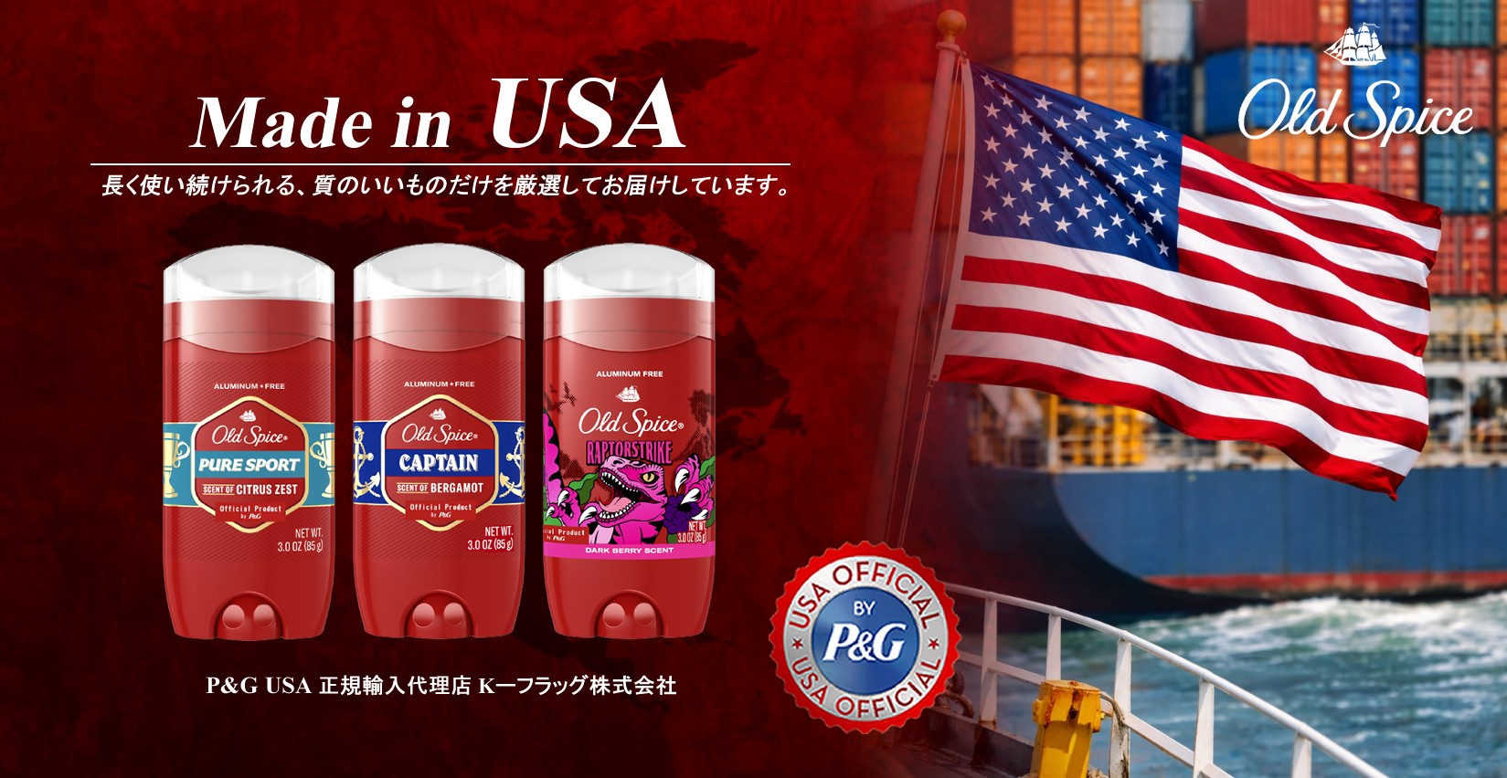 K-フラッグは北米市場(USA)向け Old Spice 正規輸入品をお届けしています